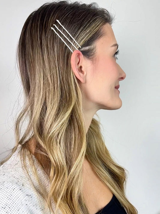 Designed to blend seamlessly with your hair, our pins come in a range of neutral matte shades—including blonde, brown, red, gray, and black—for a discreet and polished look. Whether you have fine, thick, or textured hair, our durable pins provide a comfortable and reliable hold.